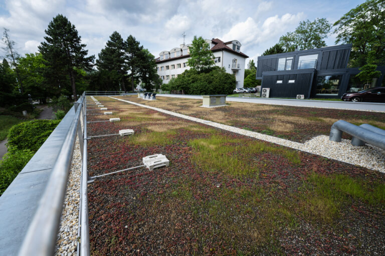Stávající střešní konstrukce byla proměněna v moderní systém s vysokou akumulační schopností. Na přízemní části budovy C v areálu Mendelovy univerzity v Brně tak vznikla extenzivní zelená střecha, která přinesla efektivnější nakládání s dešťovou vodou, posílila ekologické funkce a dodala celému prostoru svěží, příjemně zelený charakter.